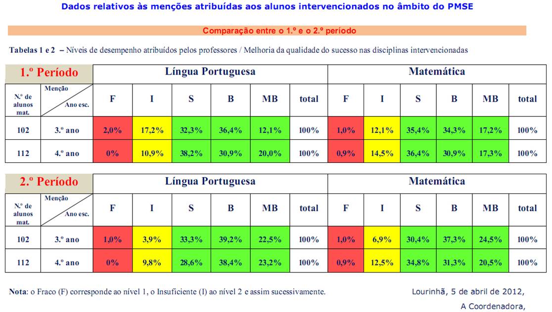 Nota: O PMSE foi alargado a todas as turmas do 1.º ciclo estando a ser apoiados cerca de 77 alunos dos quatro anos de escolaridade.
